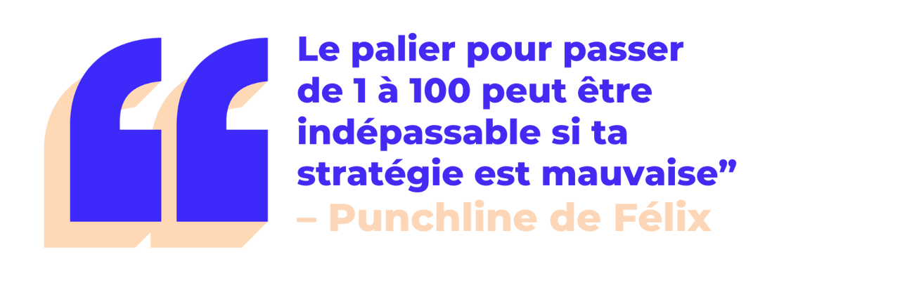 En effet, au début d'une boîte, la tactique c'est souvent tout. Pour passer de 0 à 1, émerger, trouver des clients, motiver les troupes, projeter de la confiance, oui, là, c'est beaucoup une histoire de "comment". Puis il y a un palier : un palier de croissance à dépasser, qui nécessite de s'arrêter, de réfléchir, de poser un cap et de prendre des décisions. Un palier que beaucoup ne franchissent jamais, bloqués sur place avec l’impression d’être toujours en sprint.